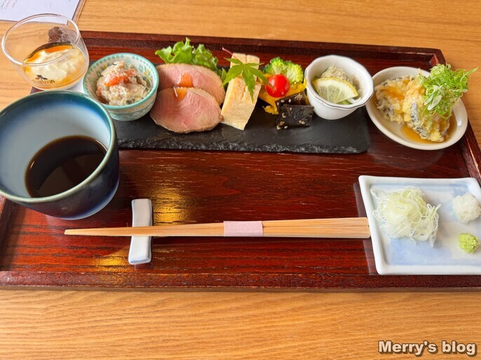 まず運ばれてきたのは、華やかな前菜の盛り合わせ。小さな器や彩り豊かな盛り付けに、ひと皿目から心が弾みます。