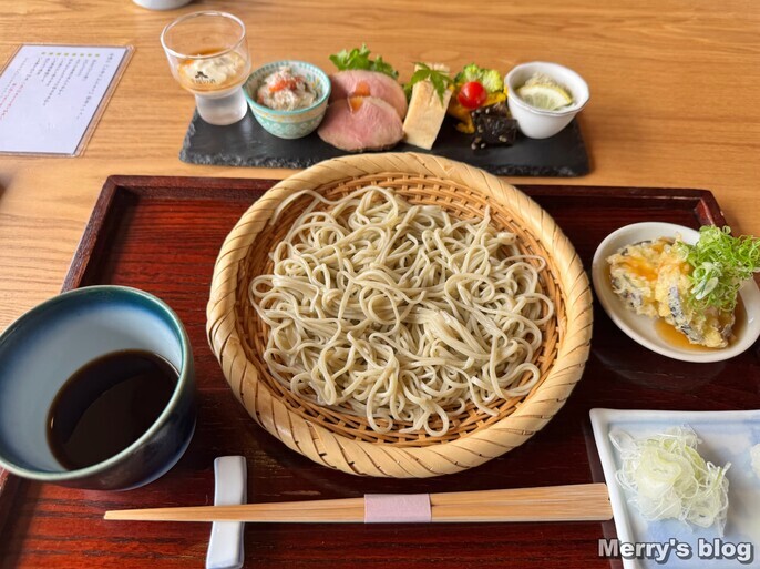 彩り豊かな前菜に始まり、香り高い細打ちの二八そば、そして食後のデザートまで大満足の内容でした。