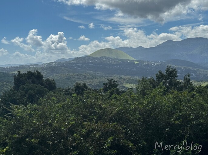 1万5000年前の噴火によって溶岩のしぶき(スコリア)が火口の周りにふり積もってできたスコリア丘です。