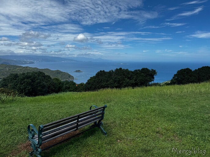 天気が良かったので海と空の青色と地面の緑がすごく映えてて綺麗でした!
