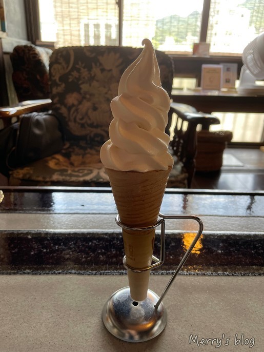 メープルシロップ味のコーンはほんのり甘く、ソフトクリームも美味しかった😄